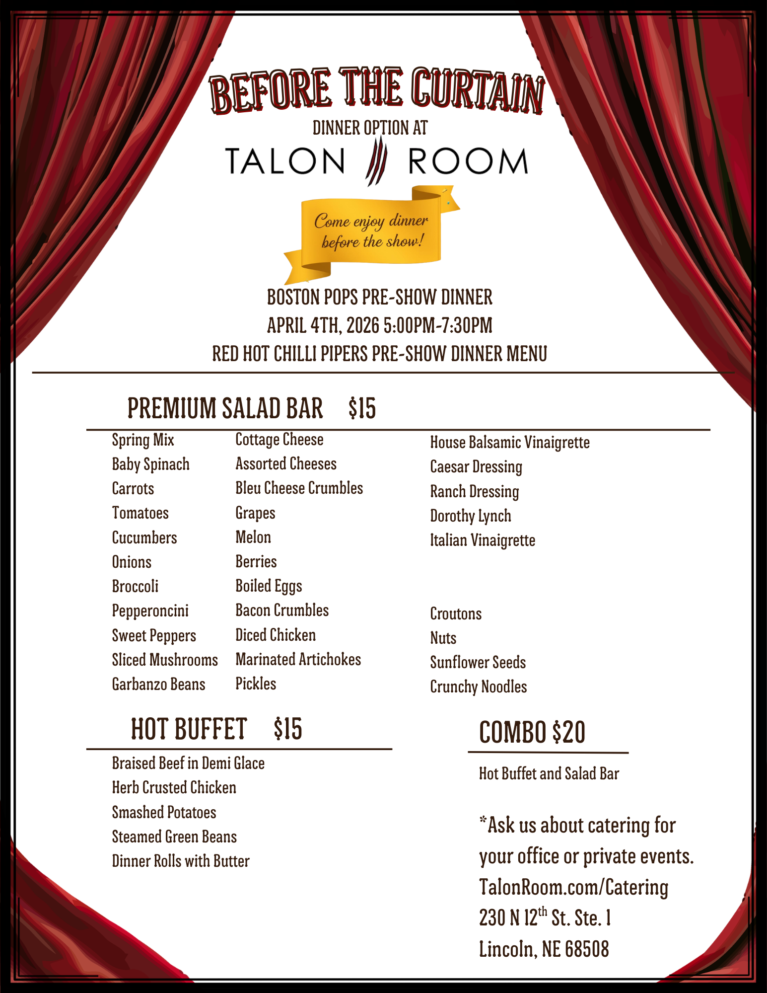 A Talon Room X Lied Center Pre-Show Dining Experience