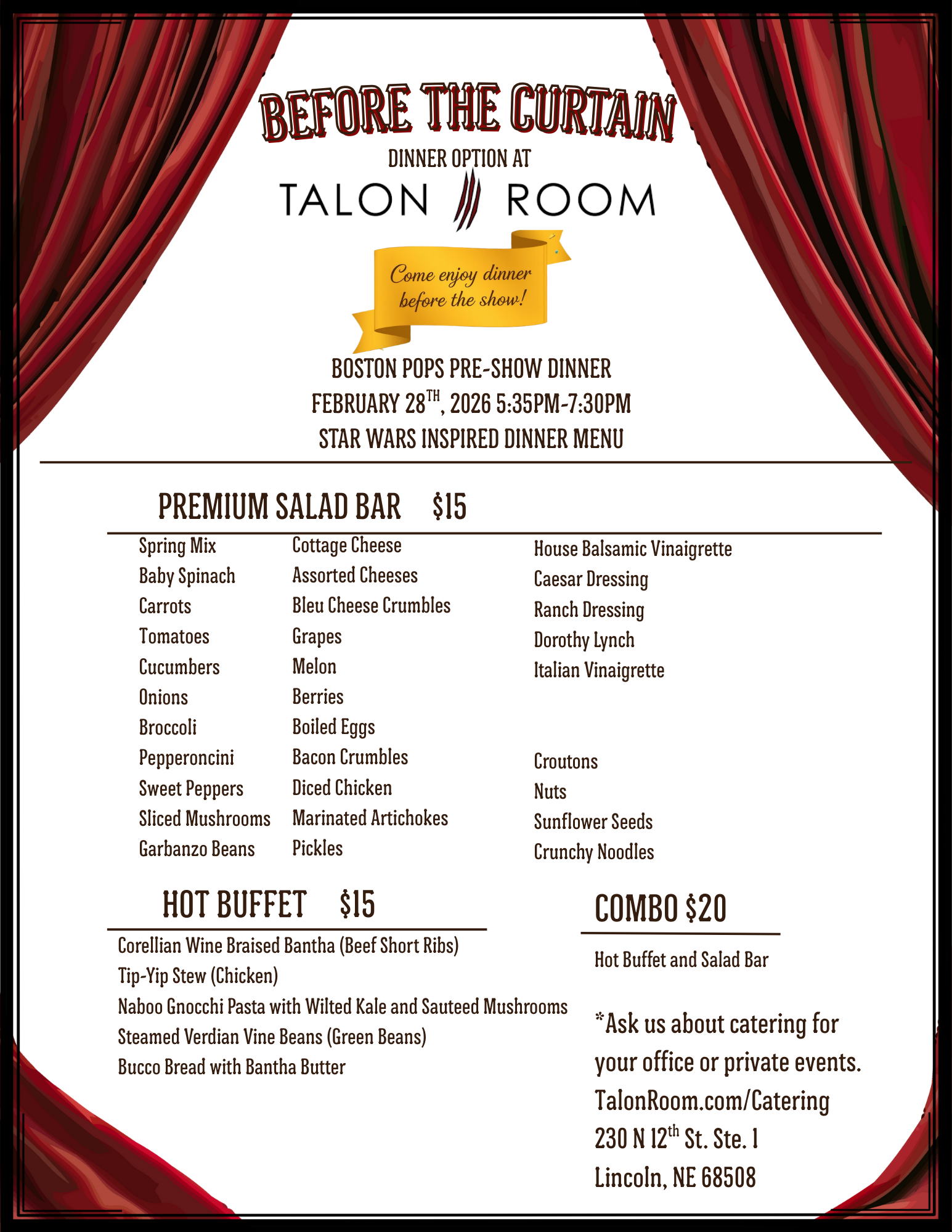 Yes. Before the Curtain is a special collaboration experience created by the Talon Room as an extension of our Lunch Club and Dinner Club programming, designed specifically for Lied Center patrons.